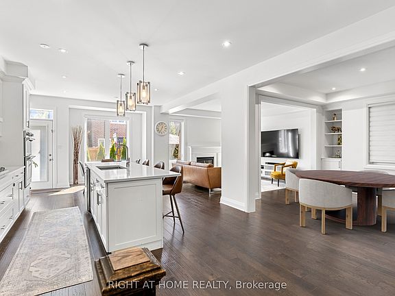 This immaculate 2,691 sq. ft. detached home showcases contemporary design with an open-concept main floor featuring rich dark hardwood flooring. The gourmet kitchen boasts pristine white cabinetry, premium quartz countertops, stainless steel built-in appliances, and a spacious centre island with pendant lighting.Elegant tray ceilings, abundant pot lights, and large windows flood the space with natural light. The inviting living room includes a cozy fireplace, while the breakfast area opens to a private backyard perfect for entertaining.The second floor features a rare and highly coveted bonus family rooma exceptional find that transforms everyday living. This versatile upper-level retreat offers endless possibilities as a children's playroom, home theatre, teen hangout, or quiet reading sanctuary, providing valuable separation from the main living areas. This sought-after feature adds tremendous functionality and appeal, creating the perfect space for families to spread out and enjoy. The well-appointed bedrooms complement this bonus living space, while the primary retreat features a luxurious ensuite with freestanding soaker tub, glass shower, and double vanity.Additional highlights include an unfinished basement with tremendous potential, attached double garage with interior access, and modern window treatments throughout.Located in a sought-after Whitby community with convenient access to excellent schools, shopping, recreation, and major transportation routes including Highway 401. This exceptional property combines stunning design, generous living space, and prime location.