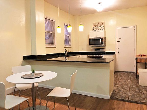 LANDLORD PAYING FULL BROKER FEE Main floor of a beautiful Victorian home available with 3 large BR on a gorgeous tree lined street in Weehawken's coveted King's Bluff section. Rent includes 1 Car driveway parking. Only half block to 24/hr bus service to NYC and Hoboken on Blvd East for easy commute. This charming home is located steps from the promenade with NYC views. Enter to a true foyers with storage closet and stained glass window, follow into a large living area, open to the kitchen with breakfast bar. The front bedroom is king sized and both other BR's can handle queen size beds.Other features include, windows on all sides for great light, hardwood floors, exposed brick, high ceilings and 2 window AC units for tenant use. Building amenitiesinclude wrap around porch, small shared yard. Heat and hot water included! Short walk to 24 hour bus/jitney to Manhattan, Hoboken transport, free Weehawken Shuttle and easy street parking. Available Sept 1st. Will consider a small pet with a monthly pet rent.
