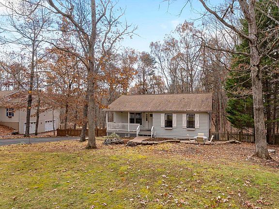Welcome to Lake Monticello and this charming cottage with a private, fenced backyard! Meticulously maintained, this home greets you with a covered front porch and a bright, open floor plan. The kitchen shines with a stunning tiled backsplash, a cozy breakfast area, and views of the spacious deck—perfect for outdoor entertaining. The main-level primary suite offers a stylish vanity and generous closet space. An additional bedroom and full bathroom are also on the main level. The terrace level is ideal for recreation, featuring a large multi-purpose area with a bar, unfinished storage space, laundry, and a roughed-in full bathroom. Step out to your private patio and backyard, complete with a storage area. Don’t miss out—schedule your private showing today!