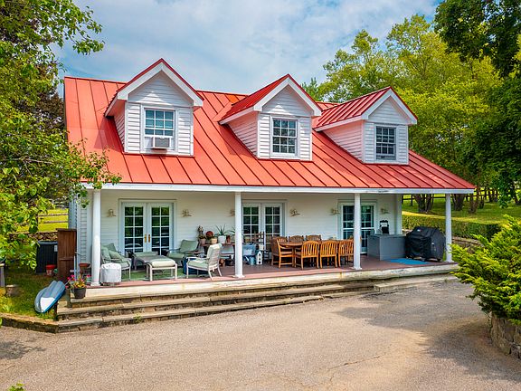 Now available for rent, this guest house is part of the prestigious Kirby Hill Farm on Quaker Hill, one of the Hudson Valley's most esteemed estates. This utterly charming Cape Cod-style home features three dormer windows and a classic red metal roof, all set on nearly 250 acres of a gentleman's horse farm. A gated entrance on Kirby Hill Road leads to a brick-paved driveway that opens into a circular driveway in front of the 2,058 SF, 3 bedroom, 4 bath home. The 480-square-foot farmhouse-style front porch spans the entire length of the home, with three sets of French doors providing access to the interior. Inside, the crisp white walls and classic terracotta clay tiled flooring create a stunning contrast. The first floor boasts an open floor plan connecting the Scandinavian-inspired kitchen, a dramatic two-story dining room with an interior balcony, and a cozy living room. This level also includes an office area, a full bath, and a laundry/mechanical room. Upstairs, the steep roof and dormer windows add to the charm of each of the three bedrooms, each featuring its own attached full bath. Outdoor amenities include a tennis court adjacent to the home and ample yard space for recreation. As a rental on the grounds of Kirby Hill Farm, additional opportunities such as horse boarding, riding lessons, or enjoying a polo match may be available. The tenant is responsible for electric, propane (heat, hot water and stove), Comcast/Xfinity Business internet/cable, and tenants' insurance. The landlord provides garbage, lawn, and snow removal. The landlord also provides a whole house generator (and diesel) for peace of mind during inclement weather. Located just minutes from the quaint Village of Pawling, residents can enjoy charming boutique shops, fine dining, fun eateries, pub, and a seasonal farmer's market. The Pawling Metro-North Train Station offers easy access to New York City, just 90 minutes away by train. Shared use of tennis court with the Main Estate. Tenant responsible for electric, propane (heat, hot water & stove), Comcast/Xfinity business internet/cable and must provide tenants insurance. Landlord provides lawn, snow, garbage and diesel for the generator. Additional amenities for Kirby Hill Farm can be discussed with LA at an additional price. Each adult tenant to fill out online application, the link the LA will provide, $20 per adult, provide verification of income and a copy of drivers license. No smoking. Pets to be approved by landlord. Dining room table and chairs stay with the rental. 2 AC window units will be provided.