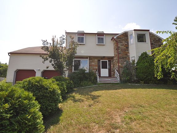 CENTER HALL COLONIAL IN FOXBOROUGH NEIGHBORHOOD*4 BEDRMS*2.5 BATHRMS*NEWER WINDOWS,VINYL SIDING, & PVC FENCE*2-CAR-GARAGE*FULL BASEMENT*LARGE EAT-N-KITCHEN W/SEPARATE EAT-N-AREA W/SKYLITES & NEW SLIDER TO DECK & BIG LEVEL FENCED YARD*FAMILY RM*FORMAL LIVING RM*FORMAL DINING RM*OVERSIZED LAUNDRY RM*VERY CONVENIENT LOCATION TO NYC BUS & LOCAL SHOPPING*WORN CONDITION INSIDE*PRICED ACCORDINGLY*LOTTA HOUSE FOR THE MONEY