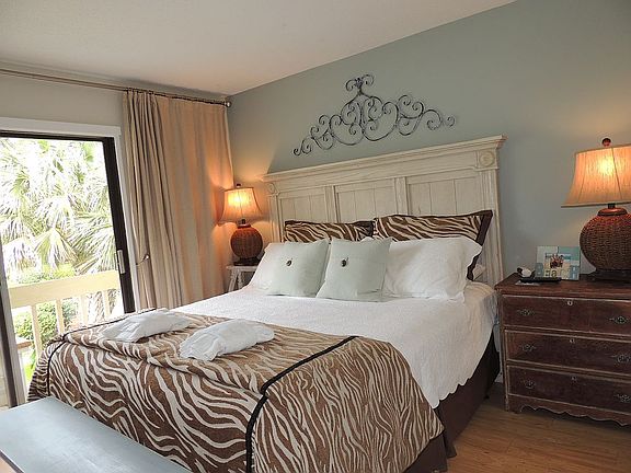 Location! Location! Location! Large 1,500 sq. ft. Villa, Sleeps 8. Completely renovated and professionally decorated 3 bedroom (with an additional study/nook with a queen bed), 2 ½ bath townhome with a casual beach cottage feel. Just steps away from Coligny Plaza with over 60 shops and restaurants. Only a short stroll (1 ½ blocks) to the spacious and open beach and the new Coligny Beach Park (a must-see) with beautiful hardwood boardwalk, showers, changing stations, gazebo, and geyser-style fountain. Two Master Bedrooms with King Beds and 46” HDTVs. Spacious Guest Room with Double Bunk Beds to comfortably sleep four. Additional room/study with Queen Bed. Open den, dining room and kitchen. Den provides a great gathering space with walk-out to patio and just steps to the pool. 55” Smart HDTV over faux fireplace. Dining room comfortably seats eight around the large family table. Kitchen is fully stocked with everything new including stainless steel Kitchen Aid smooth-top range with warming drawer, granite countertops, French-country open shelving, etc. Private patio with outdoor dining table with umbrella. Laundry room with new side-by-side full-size washer and dryer. Large (approx. 1,500 sf) 3-story townhome has balcony or deck on all levels with view of pool. No need to get in your car once you get here! Walk and bike everywhere from this great location! Bike rental next door at Coligny Plaza. Family friendly biking/walking trails all around with easy access to island and beach. Golf courses within a mile or two - Shipyard and Sea Pines Golf. All you need at your fingertips – grocery store, restaurants, beach, theater, outdoor pavilion, park, shopping, etc. Great rental and great location.