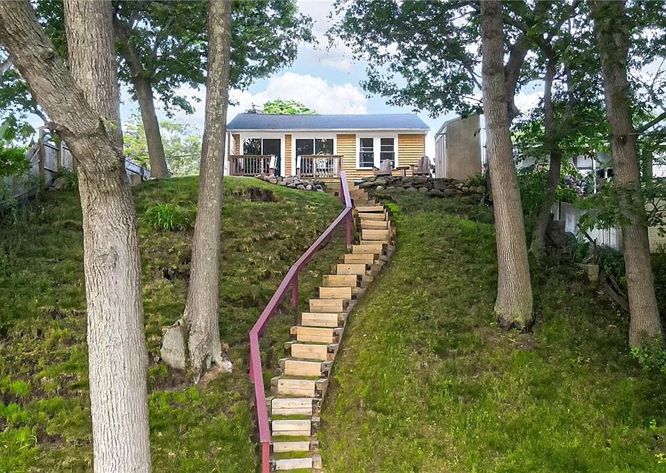 Nestled on a dead end street in the heart of Warwick, RI, this ranch style home sits on 85 acre Warwick Pond. This beautifully updated home, built in 1945, combines classic charm with modern amenities, offering breathtaking water views from almost every room.This delightful 2-bedroom, 1-bathroom home boasts a brand-new roof, new siding, new exterior doors, and a new deck, ensuring it looks as stunning from the outside as it does on the inside. As you step through the doors from the new back deck you'll be greeted by the warmth of refinished hardwood floors that flow seamlessly throughout the open floor plan.The living area, complete with a stunning brick fireplace, opens up to the newly added finished space at the back of the house, complete with two new sliders providing stunning panoramic views of the pond. The efficient kitchen features new granite countertops and updated stainless steel appliances. The full basement offers ample storage and laundry facilities, while the oil/steam heat system and sewer connection ensure hassle-free living. With direct waterfront access to the pond from your backyard, stunning views, and updates galore, this charming waterfront ranch is a rare find. Don't miss the chance to own a piece of paradise in the vibrant and convenient location of Warwick, Rhode Island. Your waterfront dream home awaits! No Flood Insurance Required!