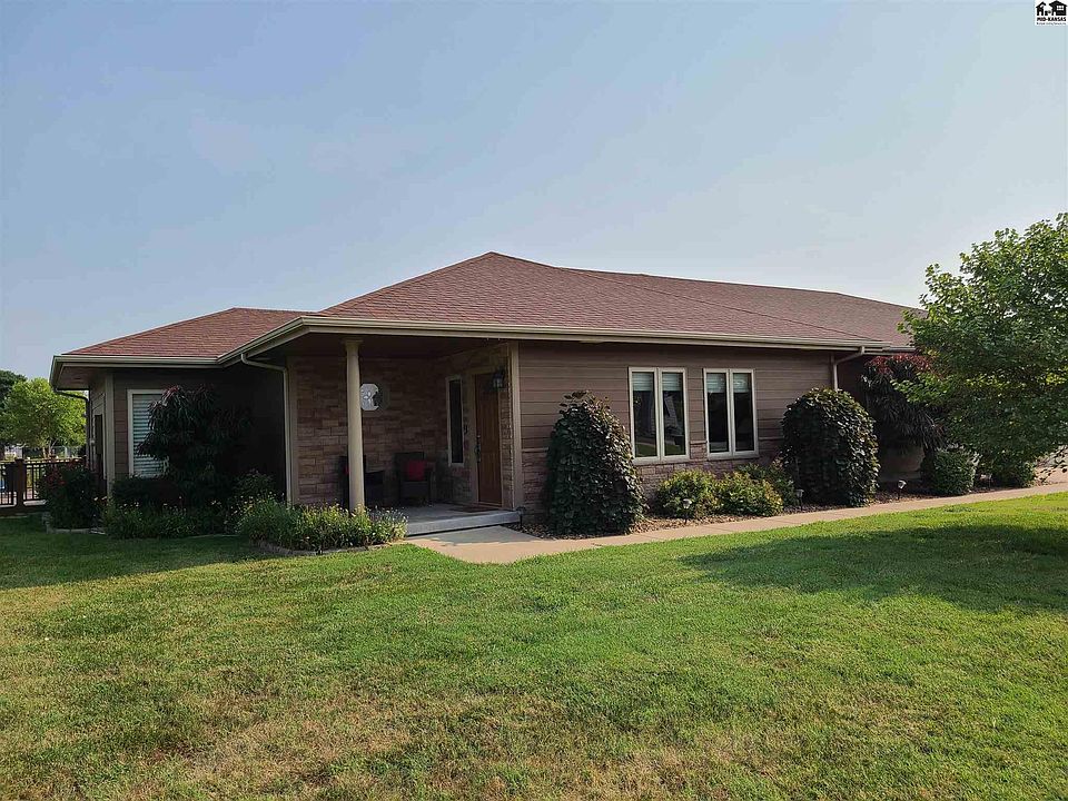 This...home...is ...GORGEOUS! Ranch home located in Smoky Valley Estates with one level living and a great floor plan. Updated flooring throughout, fresh interior paint plus a touch of barnwood and that country feel. The kitchen features granite countertops, and updated cabinets. Great breakfast bar and room for a table with a view of the water. Both bathrooms are spacious with granite countertops and vinyl plank flooring. Master suite features a sliding glass door out to the porch - perfect place for a morning cup of coffee! Garage is oversized with generous storage and room for a work bench or two. You just can't beat this location, the views from the back deck, and sunsets overlooking the lake. Picture perfect from every view. The large composite deck features a pergola and seating for a large crew. Landscaping tastefully done all the way around the deck and home. HOA is $75/month and covers mowing, trimming, fertilizer and road maintenance. Life is great in Lindsborg!!