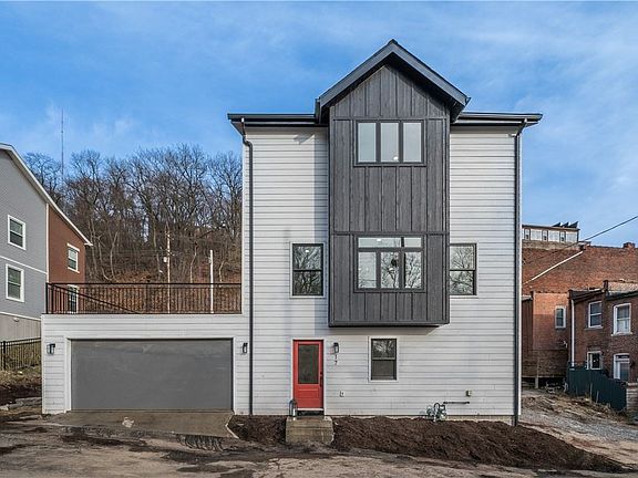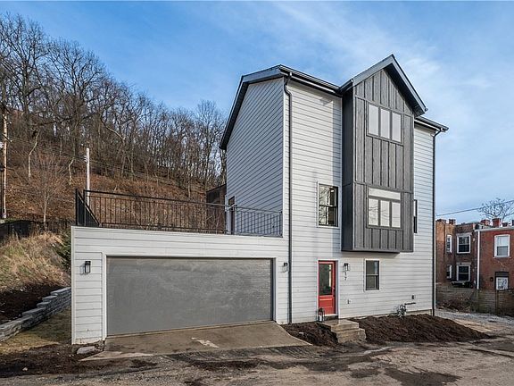 Welcome to a beautiful newly-built home on Pittsburgh's North Side, offering flexible living spaces and spacious outdoor entertaining areas. At street-level you will find a generous two-car garage, a mixed-use entry space, guest room, full bathroom and laundry nook. Wide-plank oak flooring, modern black hardware, and custom steel railings throughout. The raised main level offers privacy with an open kitchen, dining and living area, deck access and a convenient half bath. The modern kitchen boasts Quartz countertops, large island, stainless steel GE appliances and white shaker-style cabinets. The upper level includes two ensuite bedrooms. The primary bedroom has dual closets and a walk-in shower. A nice-sized backyard and an 18'x18' deck offers a distant view of Mt. Washington and tons of space for outdoor living. High efficient home with double-pane windows, tankless water heater, led lights and high efficiency gas furnace. Includes 1-Year Builder's Warranty.