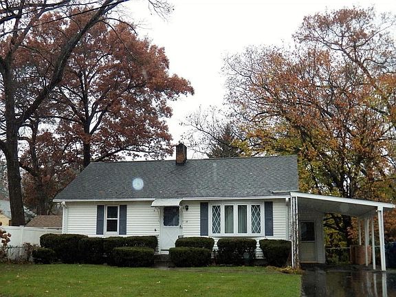 Cute vinyl sided Ranch in desirable neighborhood. Living Room with hardwood flooring and light-filling bow window. Kitchen with tile flooring, plenty of storage, double stainless sink - and open to cozy Dining Rm with hardwood floor, ceiling fan and sliders to relaxing Deck. Den/Office addition off back with laminate flooring and access to backyard. Finished basement room for expanded living area or play space, ready for your redecorating touches. Terrific Carport for bad weather shelter! Driveway was resurfaced in last 3/4 years. Newer roof on carport and back addition; main roof approx 18 yrs. Replacement windows, Central Air, In-Ground Sprinklers. Fantastic back yard with storage shed and wonderful space for all your play or gardening activities....and all fenced in for your pet, too! Some updates will add new sparkle to this sweet home. Great value!