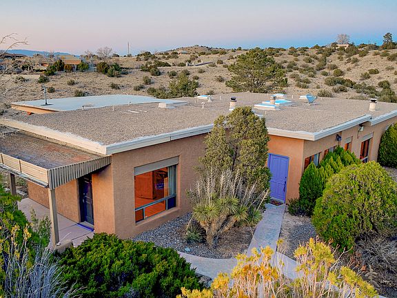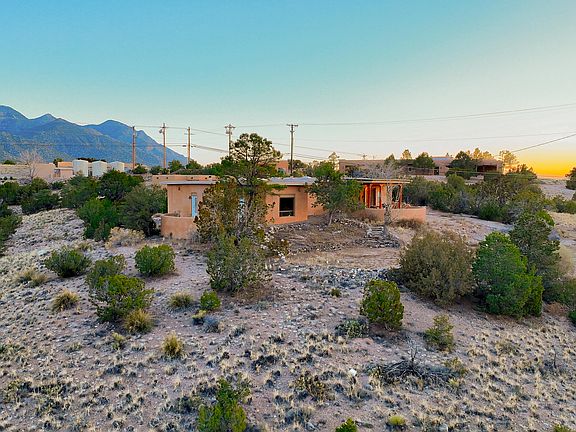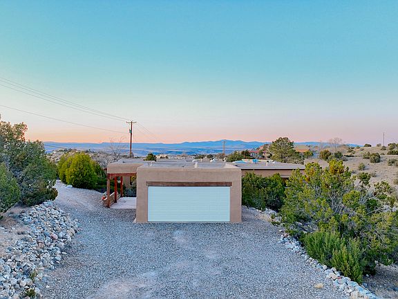 Welcome to this stunning 3.6-acre property nestled in Placitas! This custom home boasts paved roads leading right to its doorstep, offering convenience and accessibility. With breathtaking views from every room, you'll experience tranquility and serenity like never before. Inside, you'll be greeted by charming brick floors, complemented by tongue-and-groove ceilings and beams, adding warmth and character to the space. The kitchen is a chef's dream, featuring abundant custom pine cabinetry and a spacious island, perfect for meal preparation and entertaining guests. Cozy up by one of the two woodburning stoves on chilly evenings, adding to the inviting ambiance of this exceptional home.