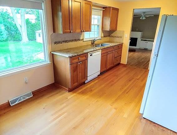 Owner has done it right! Well cared for Colonial in Bayberry neighborhood with wonderful updates! Kitchen fully renovated in 2014 incl granite counters and tile backsplash, sink, disposal, all new appliances and roll-out cupboard shelves. Beautiful hardwoods run throughout the house. Both Baths have been updated. Large living room with wood burning FP. Built-in gas FP and entertainment center w/ bookshelves was added to family room. Slider from family room leads to a generous park-like back yard with large patio and shed. Garage is finished and has added shelving for storage...and yes the basement is super dry! Plus new furnace was added in 2013 with smart technology talking thermostat. Don't miss this one...and don't wait!