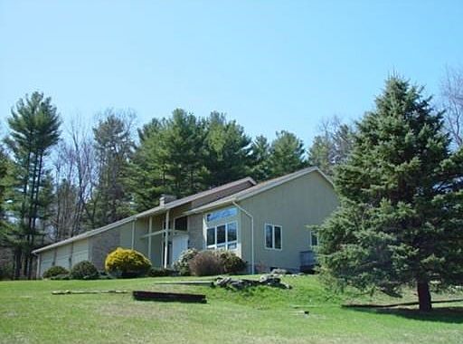 Custom built contemporary with 11.59 acres in a one-of-a-kind location. Relax as you sit on your 750' wraparound porch and let the troubles of the world fall away. Sunken living room with a wet bar and a fireplace with wood stove insert opens to the dining area with sliders to the deck and a view of the land and stonewalls. Formal living room with soaring ceilings and windows that take advantage of the scenic views. The luxurious master bedroom with master bath suite includes a jetted tub. A perfect home for entertaining. Oversized 3-car garage too. Peach and apple trees are part of the lush landscaping. If you want quality, comfort, peace and quiet - this is the one for you. Call today!