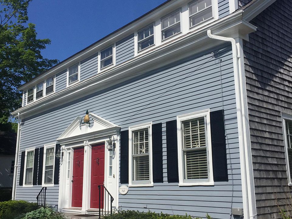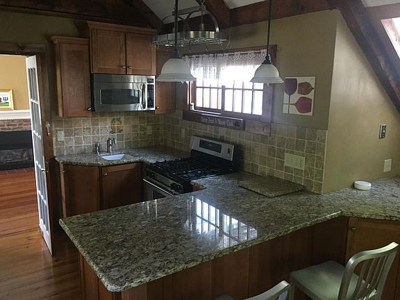 Sandwich Village historical duplex unit. 2 bedroom, large eat in kitchen with stainless steel appliances, granite counters. Dining room , living room with gas fired insert stove and half bath on first level, featuring hardwoods floors and French doors. Large full bath with shower and tub as well as double sink. Backyard great for relaxing or grilling. Off street parking, central heat and air. Hook ups for stackable washer and dryer. First and Last, No pets , No Smoking. $1850 per month. 1 year lease.