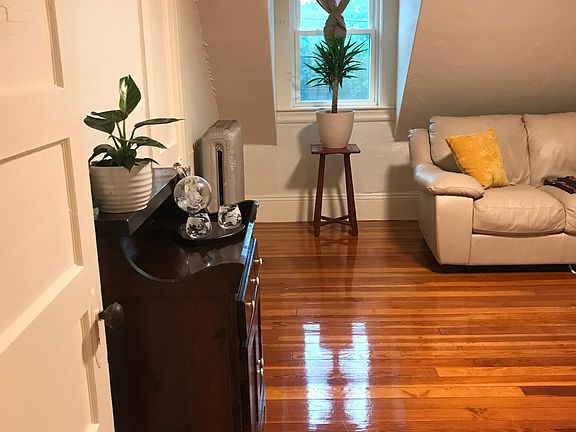 This spacious third floor apartment is close to the bike path and Downtown Easthampton. The eat in kitchen has a gas stove and refrigerator. In addition to the bedroom and living room is an extra room that could be a guest room or an office. Month to month tenancy. Realtor fee of 60% one months rent with application. If application is denied the fee is refunded in full. Landlord takes first and security for move in (no last). Included in rent is heat, hot water, off street parking, trash removal and snow removal.