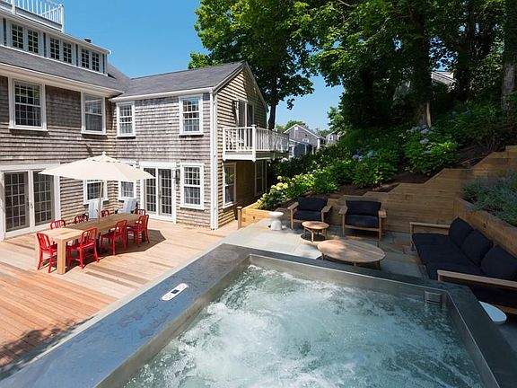 Beautiful 4 bedroom 4 1/2 bath house, built by premeire island builder Jonathon Raith, is tucked away on a lovely quiet street, just minutes from downtown. The house features a grand rear deck and raised patio with large hot-tub, grill, dining, and lounge areas, completed with an outdoor shower and private off-street parking First floor: Open kitchen/family room and large fireplaced dining room all have doors to back deck. The front living room features a wet-bar, gas fireplace, custom built-in book cases and cabinetry, HD art frame TV, sonos sound system. Second floor: Three bedrooms each have king size beds with art frame TVs and en-suite bathrooms. Third floor: The bedroom comes with a king bed and a twin/full convertible bed, art framed TV and en-suite bathroom. Fully stocked kitchen, fine linens and towels, as well as all furnishings inside and out transfer with the property.