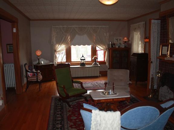 Wow!! Stunning entry-way leads to the large central gathering area foyer. This is merely the beginning. Refinished natural hard woodwork along with hardwood floors. Only 3 families have lived in and loved this amazing 100 year old prairie style home. Just a few of the many special features are: tall ceilings with tin-type ceilings in the kitchen and adjoining breakfast room; abundant & floor to ceiling cabinets with garden kitchen window; 2 fireplaces; loads of closets including 2 walk-ins in the master BR; 2 sun-porches with one off the master bedroom; 4 large bedrooms open into the spacious upstairs hall; security system; NEWLY REPLACED ROOF using the original covering clay tiles; laundry chute; patio and iron fencing along with a multitude of flowers invite you to stay.