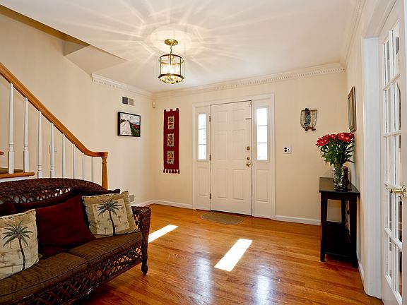 this spacious, sun drenched 6 bedroom, 4.1 bath Center Hall Colonial features generous living room with French doors open to dining room, large dine-in-kitchen with breakfast area, powder room, family room with fireplace and sliding glass doors to patio and deck. Second floor has expansive master suite with cathedral ceiling, walk-in-closet and lovely master bath with whirlpool tub, bedroom with bath, bedroom with bath, bedroom, hall bath, bedroom, bedroom/office. Large 2 car garage at grade and fenced in yard. All this in ideal Heathcote location, easy walk to school, shops at Five Corners, park, worship and bus to train.