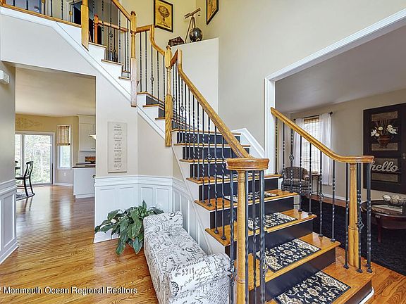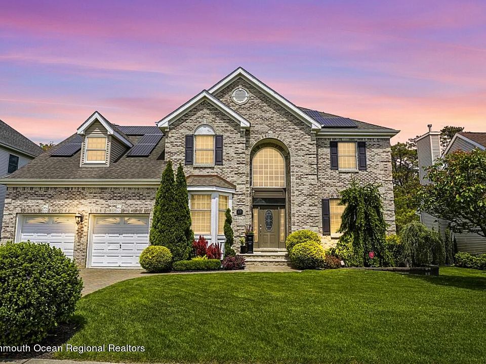 Welcome to 17 Lippincott - a sophisticated, custom stone colonial, tucked away in the premier residential enclave of Winding Run, one of Little Egg Harbor's most sought-after neighborhoods. Stunning 2,700+ sq ft interior, brimming with classical details, connects to an outdoor oasis, which backs to an aviary sanctuary, ideal for both relaxing and entertaining. Upon entering the home, you're greeted by gleaming hard wood floors, a grand double-height entry hall with curved staircase, flanked by a formal LR and DR, office/ BR, powder room & access to the full basement with high ceilings. Beyond the entryway, lies an eat-in kitchen, adjacent sunken family room with wood burning fireplace, laundry room and access to an oversized 2 car garage. Three generously sized BR and a BA are on the second floor, along with a spacious en suite MB w/ vaulted ceilings, complete with striking double door entry. Additional exterior features include paver driveway, underground sprinkler system, hot tub, stamped concrete patio and owned solar panels. With so much to offer, this home is sure to please... Schedule your showing today and the movers tomorrow!