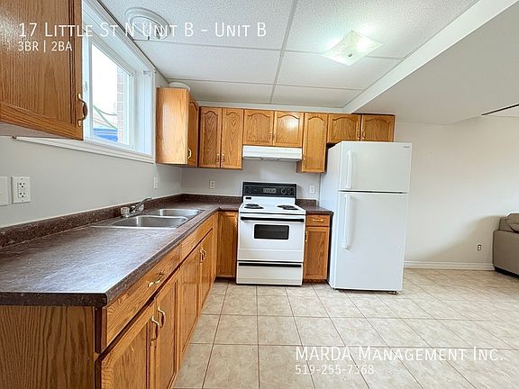 Welcome to 17 Little Unit C! This beautifully updated split-level townhouse featuring 3 bedrooms and 1.5 bathrooms, offering both comfort and style. Freshly painted walls throughout create a clean, modern ambiance. Upstairs, you'll find three spacious bedrooms, including a master with high ceilings, large windows, and double-door closets that provide ample storage. The two additional bedrooms also feature double-door closets and durable, elegant vinyl flooring. On the main level, the spacious L-shaped eat-in kitchen is both functional and stylish, ideal for meal prep and casual dining. The open-concept living area offers versatility for furniture arrangements, creating a warm and inviting space for relaxation and entertaining. A half-bath and laundry room combination on the main level adds to the convenience, with laundry hookups ready for your use. Enjoy easy access and privacy with a back entryway, as well as the convenience of assigned parking. Tenant responsible for Hydro & Gas. First and last month's rent and a credit check are required. One-year lease minimum. Professionally managed by MARDA Management, offering 24/7 maintenance support and hassle-free rent payment options. Freshly Painted Laminate Flooring No Smoking Allowed Pet Friendly Shared Back Yard Washer/Dryer Hookups Available