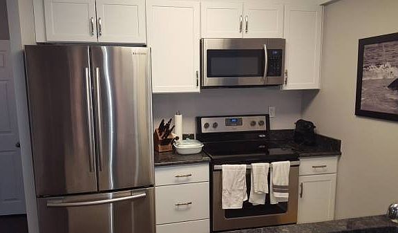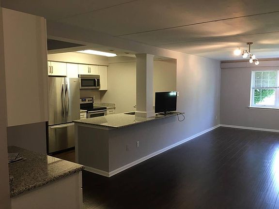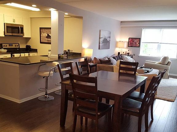 Spacious three bedroom two bathroom apartment that is located one block to Suburban Square and Ardmore Train Station. Three separate entrances to the apartment. Private fenced in flagstone patio with separate entrance. Large living area that has brand new kitchen with granite countertops, and new stainless steel appliances. Large French door refrigerator. Breakfast bar. Pantry closet. Beautiful hardwood floors. Master bedroom has own bathroom with new vanity, medicine cabinet and tub. Second hall bathroom has new vanity, medicine cabinet and glass enclosed shower. Numerous closets throughout apartment. Built in bookshelves. Laundry in unit. Storage space. Elevator. Rooftop deck. Free off-street parking. Heat and central air included in the rent. Beautiful, quiet setting with goldfish pond and fountain on site. Walk one half block to shopping at Suburban Square or R5 train. Near Narberth, Haverford, Wynnewood, Bryn Mawr, Rosemont and Villanova.