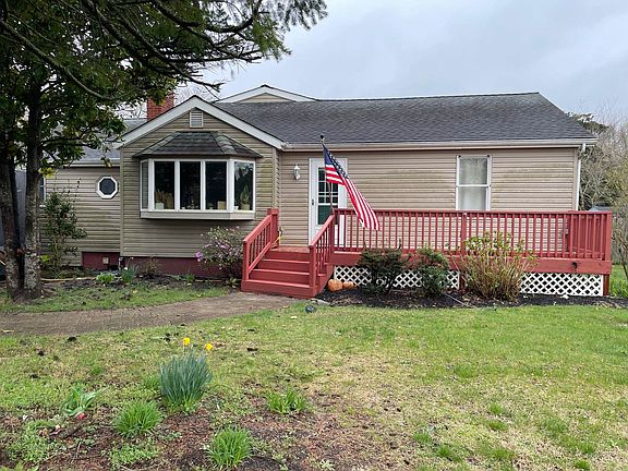Spacious four-bedroom, two-bathroom residence conveniently located within a short stroll to the town center. The living room boasts hardwood floors and a cozy wood-burning stove, flowing seamlessly into a generously sized dining room adjacent to the kitchen. The kitchen features a breakfast bar, center island, and modern stainless steel appliances. Three of the bedrooms also feature hardwood flooring, while the master bedroom includes a private bathroom with a luxurious Whirlpool tub and a walk-in closet. Enjoy outdoor living with a large deck. Additionally, there's a detached two-car garage equipped with a walk-up attic, complete with a gas heater and ample power outlets for all your tools and projects.