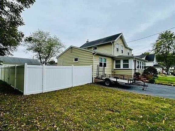 This double lot home is like no other in the area! About 11,000 sq. ft. of fenced in property. The rear entrance of the home has a detached two-car garage with above storage. Along with a large deck, great for entertaining. Still leaving you with plenty of yard, and a sprinkler system. In addition to the back driveway, there is a paved driveway in front for two more vehicles. Entering the front door is a heated Early American style finished porch, which leads to a large living room. To the left is the stairway to the upper level that has three bedrooms and full bathroom with plenty of closets and a large linin closet in the full bathroom. On the main level, there is a dining room, primary bedroom, kitchen and access to the basement laundry room. The primary bedroom consist of three rooms; sleep quarters with a gas fireplace, wardrobe room, closet and a full bathroom.