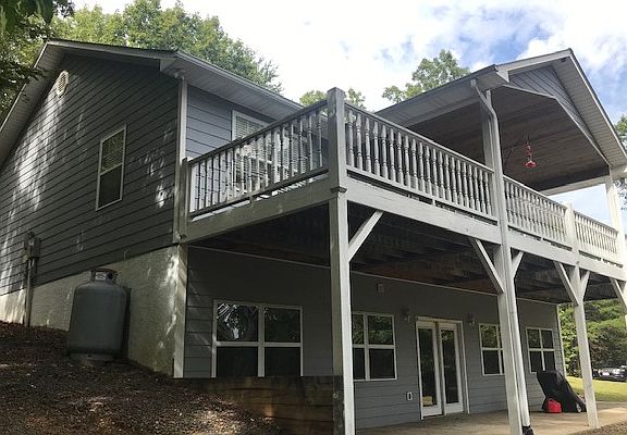 Convenient location with FIBER OPTIC internet - A lot of house for the money! Many extras include wood wainscot throughout the home with wooden ceilings in each room, lots of low maintenance windows for lots of light. Accent lighting in living area - Great room concept with cathedral ceiling opens up to 12 ft wide covered porch and open decks on view side. Main floor includes 2 bedroom plus home office, 2 full baths. Metal roof and Concrete board siding. Lower level includes a large partially finished gathering room plus basement is stubbed out for additional bath. Great expansion possibilities!