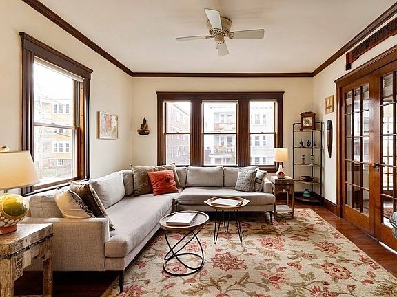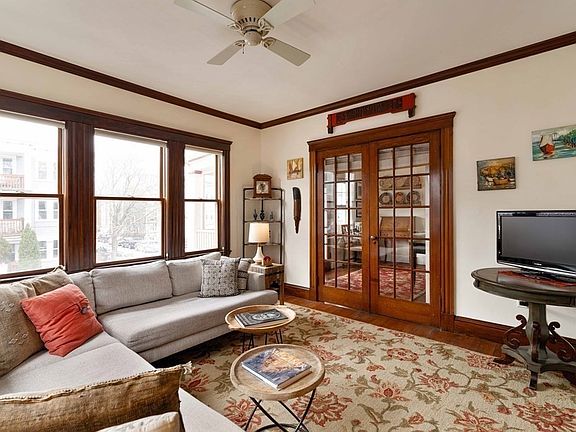 Tucked off Forest Hills St. is Lourdes Avenue, a triple decker & townhome lined horseshoe road just a sparrow’s hop away from Franklin Park’s Wilderness area.This warm & inviting natural wood accented 2+ bed middle unit beckons with its terrific layout, period charm & tasteful updates. Golden sunlight pours into the southwestern facing living room & shines through the french doors that separate the guest/office space w/ access to the covered front deck. The centered dining room, with continuing wood trim and built-in & interior lit china cab, transitions into the updated eat-in kitchen & pantry. Another covered rear deck off the back might be the perfect spot for morning coffee or an al fresco meal in the summer shade. Two amply sized bedrooms bookend a classic tiled bath. Private storage, shared laundry & patio round out the common space. There's plenty of permit-free street parking. Green St. T is under 1/2 mile from your door w/ cafes, breweries & restaurants to visit along the way!
