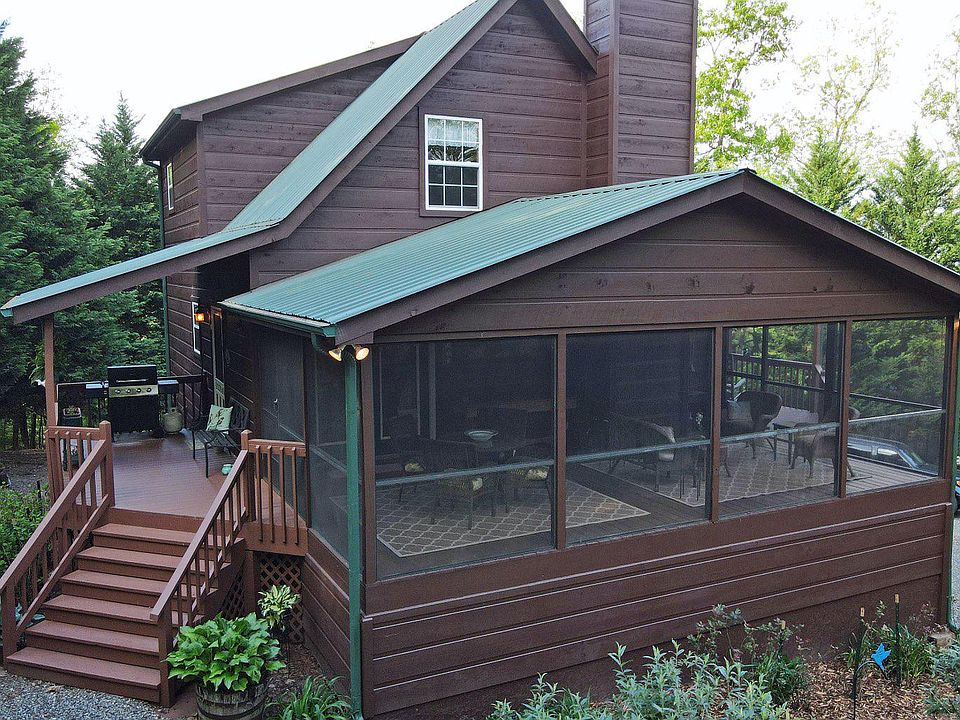 Pride of Ownership Beams from this Gorgeous "One Owner" Cabin! Country Kitchen, Dining Area with Access to the Stunning Screened Porch Overlooking the Seasonal Long Range Mountain Views! Gorgeous Wood Interior, Floor to Ceiling Rocked Gas Log Fireplace & Hardwood Floors. 1 Bed/1 Bath + Laundry on Main. Upstairs Master Bedroom, Bath, WIC & Gas Fireplace + LOFT for an Office or Overflow! Lots of Room in the Basement for a Game Room, Family Room with Gas Fireplace, Second Kitchen, Bed, Bath & Walk-Out Access for your Guests or In-Law Suite! Fabulous Location only 2.5 Miles from Town but it feels Like you a a Million Miles Away from it All. Minimal Restrictions & NO HOA Fees, Paved Access, County Water, High Speed Internet, 1 Car Garage (or Could be a Workshop), Metal Roof & Low Care Maintenance Yard! Close to Crane Creek Vineyard, Lake Chatuge or Nottely for Boating!