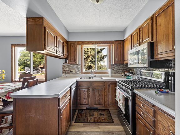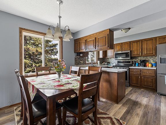 Listed by Elissa Erickson, KWBH, 605-877-4060. Move in ready split foyer home with updates inside and out, with great views of Central Rapid City! *Substantial updates in the last 3 years, including: new flooring, new trim, fresh interior paint, new kitchen appliances, new fixtures, remodeled bathrooms, reconfigured basement and more *Home has 4 bedrooms, 2 bathrooms and 1,788sqft *'U' shaped kitchen with ample cabinetry, newer stainless steel appliances and a glass tile backsplash *Cozy dining area with bay window overlooking the front yard *Large living room in back of the home, with a woodburning fireplace with brick surround and slider door to the back patio *Main level primary bedroom has private access to the remodeled bathroom, 2 closets and corner windows with great views *2 additional bedrooms and good storage space on this level *Basement level has a comfortable family room with wood stove with slate stone hearth and surround *1 additional bedroom (ntc) and 1 updated bathroom on this level *Attached drive under garage is heated and has built in storage *2 lots combined into 1, for a spacious .3 acres to call your own *Fully fenced yard (both back and front!) with mature trees for shade and privacy *Covered back deck to enjoy the sunsets *Located walking distance to North Middle School, call today! **OPEN HOUSE SUNDAY JULY 16th, 1:00-3:00