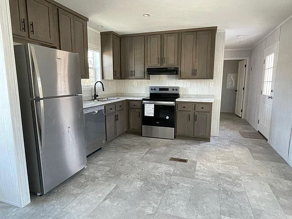 Brand New 2025 model Champion Titan Homes, 3 bedroom, 2 bath Mobile Home all set up in Seacoast MH Park. It offers a center kitchen with dining area that is open to the living room, primary bedroom and bath are on one end and 2 bedrooms with full bath are on the opposite end. It has vinyl skirting and is on a concrete slab and tied down. Priced to sell!