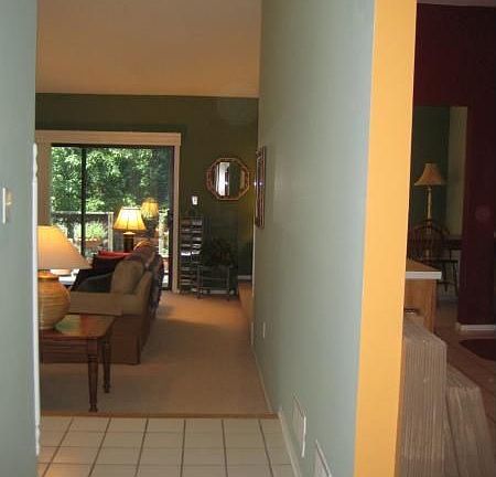 Virtually one floor living! Lovely 2 bedroom, 2 full bath end unit in The Manors. Fabulous living room with vaulted ceiling, wood burning fireplace and oversized sliding doors leading to back deck.