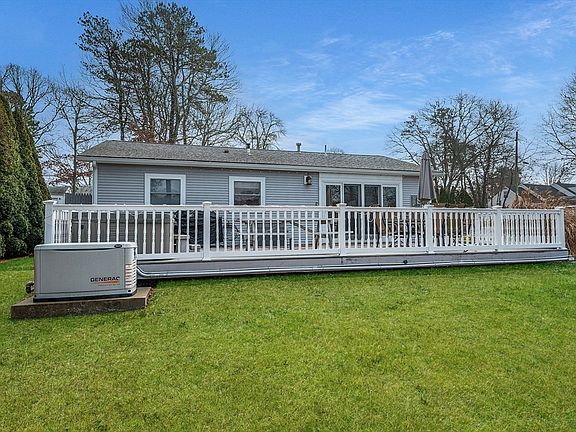 Located in Bourne, this one-level home on Queen Sewell Pond offers beautiful water views & recreation. Queen Sewell Pond is an 18-acre freshwater pond, make memories swimming, kayaking & fishing from your personal dock or the sandy beach nearby. Enjoy a large, flat, grassy backyard & fire pit area, bring the s'mores! The 35-foot deck offers space for outdoor living including a 2-person hot tub. Primary suite at the rear of the home offers privacy w/ its own bathroom & an office space(or could be converted to a WIC). The eat-in kitchen centers the home & leads to a living room w/ easy access to the deck & water views through sliding doors. The gas stove in the living room offers a cozy vibe. The main bathroom is roomy w/ a separate shower & jacuzzi tub. A convenient utility room offers storage & stackable washer/dryer. 2 sheds, outdoor shower, generator. Close to the Cape Cod Canal & Main St. Bourne & it's many amenities. Easy access "over the bridge" to Cape Cod.