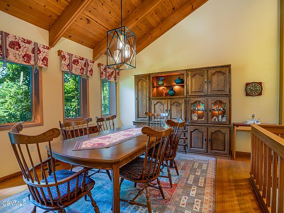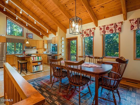 Unique. Unusual. Waiting to be yours! This contemporary, passive solar home on a wooded 2.5+/- acre lot boasts 4 BRs, 2.5 Baths, an open kitchen, dining and living room area w/ cathedral ceilings & exposed beams & more than 2900 sq. ft. of living space. All is meticulously kept & thoughtfully decorated. The kitchen offers Corian counters, a built-in desk area, & spacious island. The dining and living rooms wrap around a captivating open stairway to the lower level where you find a walk-out family room, 2 spacious bedrooms, laundry room, mechanical room & even a root cellar! This home was built for efficient living in both design and function with Geothermal heating (as back up) and cooling for comfort. A front deck & rear patio allow for outdoor entertaining too. A must see home!