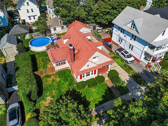 This 4-bed, 2-bath bungalow-style home offers 2,167 sq. ft.of living space and a ton of character. The upstairs bedrooms have good ceiling height, unlike many traditional bungalows, and include custom built-ins for storage. Interior highlights feature hardwood floors, a detailed ceiling with wood beams in the dining room, a pellet stove fireplace insert, and a bright sunroom. A Navien heating system installed in 2024 provides energy-efficient comfort. Exterior features include a fenced yard, deck, above-ground pool, and detached 2-car garage.