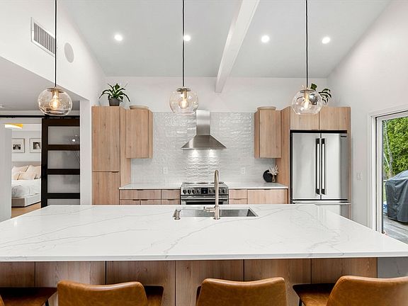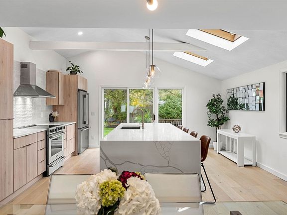 - Features: Skylight, Vaulted Ceiling(s), Closet/Cabinets - Custom Built, Window(s) - Picture, Countertops - Stone/Granite/Solid, Kitchen Island, Cabinets - Upgraded, Deck - Exterior, Open Floorplan, Recessed Lighting, Remodeled, Slider, Stainless Steel Appliances, Lighting - Pendant