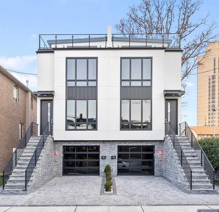BACK ON MARKET! Discover unparalleled modern luxury in this brand-new Cliffside Park duplex/townhouse! The Stylish main floor features a large living room with black-accent coffered ceilings, a gas fireplace, a spacious dining area, and a stunning eat-in kitchen with Sub-Zero, Wolf, and Bosch appliances, plus an entertainer's bar with access to a deck and gas BBQ line. Ascend the floating glass staircase to the second floor, where the luxurious primary suite boasts a walk-in closet, spa-like bath with tub, two additional bedrooms, a full bath, and a laundry room. The rooftop level offers a bonus loft or office, powder room, and bar, perfect for entertaining or relaxing with NYC views. The ground floor includes a family/rec room, full bath, and sliders to a fenced backyard. Modern amenities include Porcelanosa baths, oak hardwood floors, pre-wired EV charger, Nest thermostats, a Navien tankless water heater, and more. Conveniently located near Main St., schools, transprt, & shops.