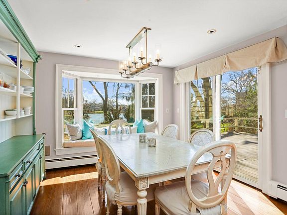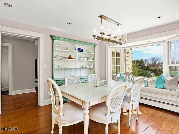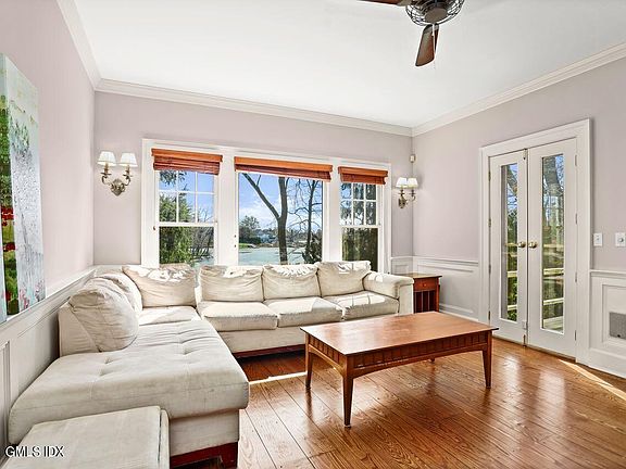 Direct Greenwich Cove waterfront with boat dock. Land is south sloping with exceptional sunlight and majestic views throughout all four seasons. House sits high above the water and is in the preferred lower risk X flood zone. CURRENT OWNER IS NOT REQUIRED TO HAVE FLOOD INSURANCE. Water views from living room, kitchen, dining area and family room. All systems are updated and in move-in condition. New Timberline HDZ architectural roof installed in 2021. Heated solarium/playroom on lower level with walk out to professionally landscaped yard. Private dock, heated driveway and more. Walk to schools, shops, trains and village.