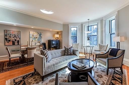 On the coveted first block and sunny side of Marlborough Street, a truly turnkey floor-through condominium with deeded parking. Offering over 1,100 square feet of sun drenched and open living space, this two bedroom residence is only steps from the world renowned Public Garden, as well as Boston's best shopping and restaurants. Classic grandeur meets contemporary lifestyle with a spa-like master bath, private outdoor space, central air conditioning, in unit laundry, and custom crafted storage features. Breathtaking living room with large bay window, fireplace, and towering ceiling height. The sleek and thoughtfully designed kitchen completes an incredible and rare offering. Enjoy life on the sunny side at one of Boston's most prestigious addresses.