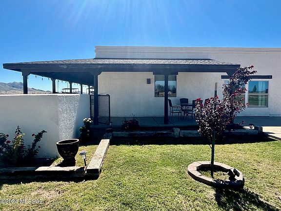 Beautiful setting away from the noise, charming property with plenty of room to roam! Acreage improved for equine/farm animals with 2 piped stalls & large cov'd metal shade for feed/recreation vehicles, fenced pastures, existing 55x25 concrete pad ideal for a shop/garage Well pump house that offers add'l storage w/Private well. Circular gravel drive, enclosed front court yard w/ a velvety lawn adorned by colorful rose bushes. Cozy comfort Living Rm/Dining/kitchen combo, walk-in laundry RM, main Bdrm w/walk-in closet. (Single car garage-converted) to 24x14 2nd Bdrm w/central HVAC. Tile flooring, tile kitchen back splash & Corian counter tops. Chicken coop & Space to add 2nd bathroom. Enjoy relaxation under semi-wrap porch with the most Sensational sweeping MTN VIEWS that is ENDLESS!