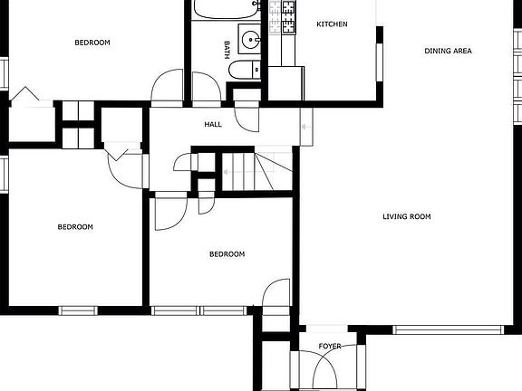 • Dining Room, Kitchen, Living Room, Bath Main, 1 Bedroom, 2 Bedrooms, 3 Bedrooms