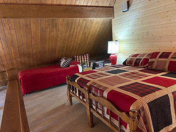Furnished Single Family Home Property backs up to permanent green belt Propane and Electric Septic Tank Wood stove and propane wall heat Internet Attached garage and covered parking Large 8'X30' back porch Both lots have been cleared/thinned per AFPO requirements Lots are combined with1 lot fee Washer/Dryer/Refrigerator/50gal water heater/Gas range 1372 sqft 1.12 Wooded Acres 2 Bedroom plus a spacious 18’X24’ loft 2 Full baths Remodeled kitchen with beautiful hickory cabinets and new appliances Tongue and groove pine throughout
