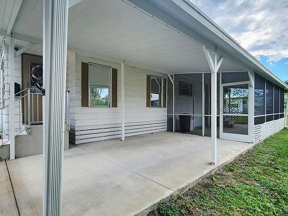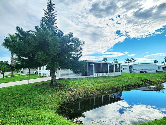 Charming, spacious 2bed/2bath home w/ beautiful water views. Roof 2020! Large screened in porch, perfect to watch the ducks & birds glide by. You will be pleased w/ this prime location; close to the beach, mall, grocery stores, shopping, post office, banks, hospitals & more. Lot lease 842.53 includes security, cafe, Clubhouse w/activities, lawn care, trash, free private golf course, bingo, heated pool, pickleball, tennis, workshop, shuffleboard, bocce, gym, library, cards, Mahjong, clubs & more! Grab your slice of paradise in the highly desired town of Port St Lucie!