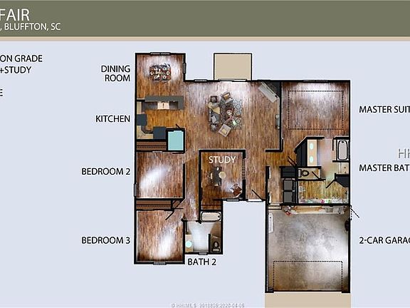 • Rooms: Dining Area, Great Room, Kitchen, Laun/Util Rm, Pantry, Foyer Entrance, Library/Office, Garage