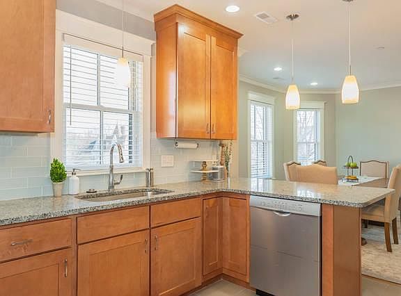 Sunny and spacious 4BR 3.5 bath luxury apartment 2 blocks from Davis Sq. This newly renovated space spans 2 levels. The unit features gleaming hardwood floors and tiled baths. Details include crown moldings, built-in bookcase, lots of closet space, and an open floor plan. There is an eat-in chefs kitchen with granite counters, wood cabinets, and stainless appliances that includes a 5-burner Bosch stove/oven/microwave, 36" fridge, dishwasher, disposal, and range hood. The building is completely insulated, all the windows are new, and the mechanical systems are Energy-star rated for super efficiency and low cost heating and cooling. There is an in suite private laundry room. For added safety there is a fire alarm, sprinklers, and security system. Internet and TV connections/wiring in every room 2 car parking. Nice private yard and quiet neighborhood, just steps from Mass Ave. buses, Davis Sq. Red Line, restaurants, stores, health club, etc. Full Fee Required upon Accepted Application