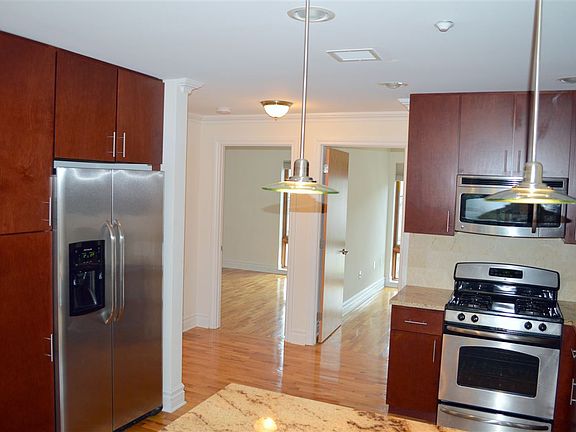 Landlord covers the Fee! Winter promotion- for 18 month lease - LAST MONTH FREE (18TH MONTH) AND 4TH MONTH FREE Apartment offers 2 bed 1.5 marble bath, solid oak doors, crown and base moldings, granite counter tops, stainless steel appliances, washer/dryer in unit, keyless entry, private balcony, central air conditioning, video phone intercom, gated property. Located one block from Rutherford train/bus station, less than 5 miles to NYC. Pets of any size are welcome! Call 917-488-2995 for the showing. Rutherford offers an excellent schooling system with plenty of shopping and restaurants nearby.