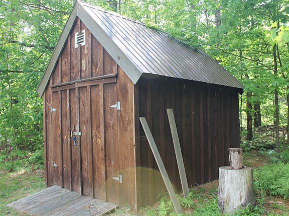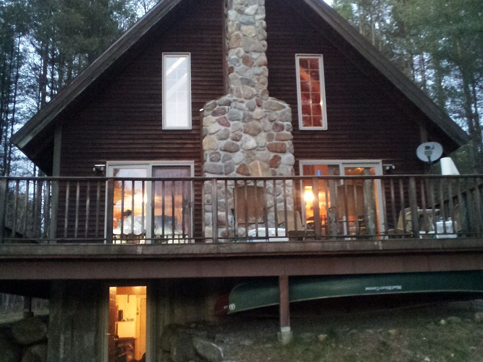Lovingly maintained A-frame, chalet-style home with open floor plan, cathedral ceiling, stunning fieldstone fireplace, large deck overlooking private yard with stone barbeque and covered picnic pavilion. Superior quality construction materials. Large capacity Quadrafire woodstove and electric heat. Built with care by current owner. Sold with furnishings and appliances. Used as private vacation home for one family, never rented. Move-in condition. Call or email to arrange viewing. Principals only, no brokers.