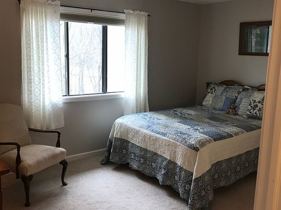 Enjoy condo living in this bright & beautiful end unit. 2 BR, 1.5 BA. Downstairs includes sunken living room with pellet stove, a wet bar & slider that opens to a LARGE private deck. Dining room with vaulted ceiling & hardwood floor. Kitchen with stainless steel appliances. 1/2 bath. Upstairs includes a remodeled master bedroom- crown molding, wood flooring, recessed lighting and WALK-IN closet. 2nd bedroom is carpeted with a WALK-IN closet. Full bath with tiled floor & granite countertop. Just 5 minutes to the MA pike, shopping & restaurants. OPEN HOUSE ON SUNDAY 10/16 FROM 12-2 IS THE FIRST SHOWING, PLAN AHEAD AND SEE YOU THEN.