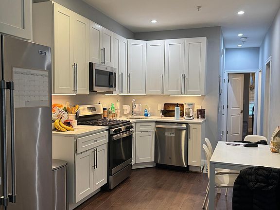 Gut renovated 4 bed 2 bath apartment spread over two levels in a great central Southie location. One bathroom on each floor is ideal for roommates. Private back deck and common back small yard. Unit complete with central air, hardwood floors throughout, in unit laundry, quartz countertops, garbage disposal and brand new stainless steel appliances. A 70 inch in the living room as an added bonus. First, last and fee due at signing.