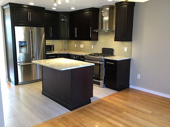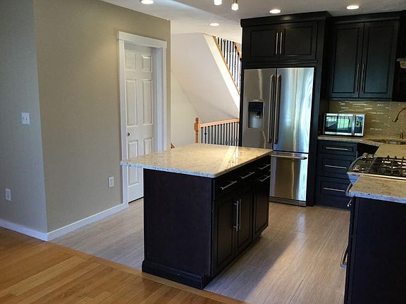 Tatnuck area! Great opportunity to rent this fabulous end unit townhome, including a garage, at Moreland Hills! You will fall in love at first sight with this fully remodeled & immaculate home! The gourmet kitchen boasts upgraded cabinetry, granite counter-tops, high-end stainless appliances, vent fan, recessed lighting & a large island! Open floor plan! And you'll be able to enjoy privacy on your patio in the nice weather! A beautiful powder room is conveniently located off the kitchen! A large living room with hdwds, recessed lighting, and a partial vaulted ceiling with skylights overlook the foyer below! You'll find 2 bedrooms on the 2nd floor with hdwds & spacious closets! A gorgeous full bathroom with a tiled tub/shower & a double vanity will please you! The laundry, with new washer & dryer, is located in a finished LL room with tile flooring & recessed lighting! No smoking & no pets!! - No exceptions!! Good credit required!! 1st, Last & Security Available now