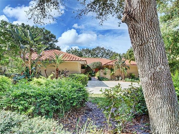 You will be enchanted by this one-of-a-kind beautiful home in desirable High Point. This casually elegant Mediterranean style home is nestled among the trees. As you enter the tropical front courtyard you are greeted by a bouquet of bougainvillea. Once inside you can look through to the back wall of glass with views of the lush backyard and pool. Beautiful travertine floors are in every room. The living room features an original working fireplace. A spacious screened patio runs the entire length of the house with access from the living room, family room & kitchen. The family room is comfortable & looks out to the pool. Kitchen has beautiful custom cabinets, SS appliances, a breakfast bar & hand painted accents. Split bedroom floor plan features three bedrooms & two and a half baths. Private master includes an en suite bath. Fenced-in back yard offers a quiet retreat w/ a pool & sitting area to enjoy a good book. You must see this quintessential Sewall's Point home.