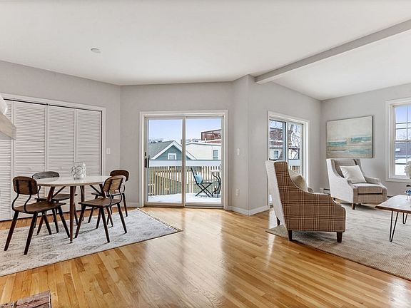 Bright and beautiful 3 bedroom/2 bath penthouse, originally created by the developer for his own family, features spacious living/dining room with fireplace and corner exposure filling the space with light. Plenty of room for large dining table and sliders out to large new deck plus exclusive roof rights. Three good-sized bedrooms with ample closet space and two full tile baths. Hardwood floors, new lighting, freshly painted and new carpet in two of the bedrooms and on the stairs. Private laundry and skylights throughout. A great home close to shopping and public transportation.