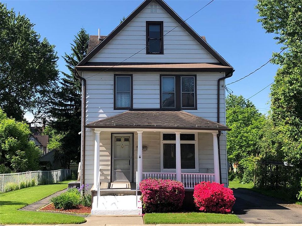 This is your home! Why rent when you can live in your own home for less? This is a solidly built, well maintained home on a very nice, large lot with a large double garage that has a great workshop within. This home boasts an updated bathroom with beautiful tile and granite, first floor laundry room, large eat-in kitchen, spacious front porch, fenced-in dog run area, newer roof, furnace and water heater and so much more. A nice feature of this is home is a large, beautiful stained glass window in living room! Schedule your appointment to see this home today!